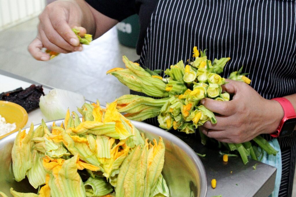 “Tengo 18 años impartiendo el taller de alta cocina, que se divide en tres módulos: cocina básica, internacional y mexicana. Esto último es lo que estamos haciendo ahora. Los alumnos tienen contextos y objetivos muy diversos: hay quienes quieren aprender porque buscan un trabajo en cocina; quienes lo hacen como hobby, o quienes sólo los mueve la curiosidad. Me parece muy bonito introducir a la gente al mundo de la cocina, más cuando te enteras que sus familias comienzan a esperarlos en casa, listos para probar un platillo nuevo que prepararon”, comenta el chef.