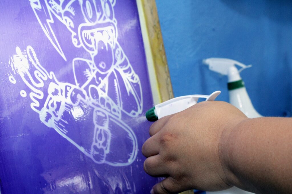 Eso sí, advierte que la serigrafía conlleva retos intrínsecos, más allá de su complejidad: “Existen dos aspectos que alejan a algunas personas. El primero es que esto involucra inhalar solventes… suena mal, pero es la verdad; estos químicos pueden causar dolor de cabeza, somnolencia, sed en mucha gente. El segundo, es que se van a manchar con tinta, algo inevitable”