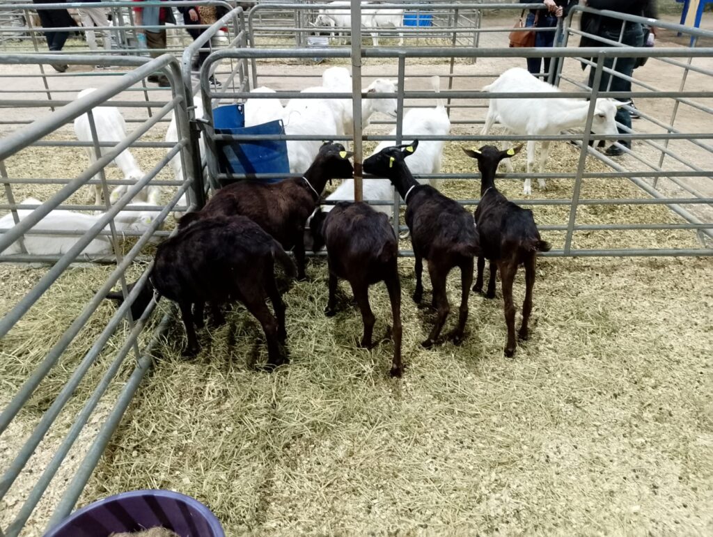 En la nave del anillo de calificación, las cabras tomaron el mando. Razas como la alpino francés, la saanen, la pigmea y Toggenburg estaban presentes, con más modales y menos estruendo del que podríamos esperar. Especialmente niñas y niños parecían cómodos y contentos alrededor de estos pequeños mamíferos, algunos incluso de menor altura que ellos.
