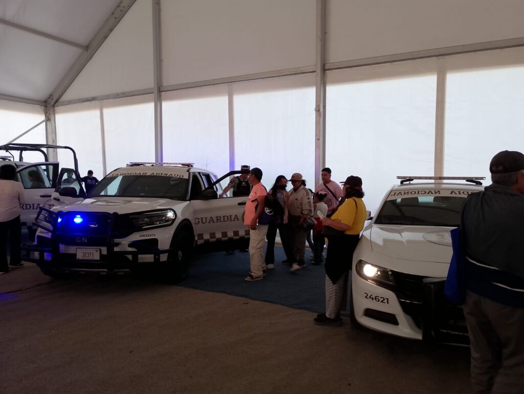 En la entrada de la feria, muchas familias se acercaron a la carpa donde la Secretaría de la Defensa, la Guardia Nacional y la Policía Estatal de Querétaro exponían. Sobre todo, los niños miraron con entusiasmo los elementos de equipamiento, vehículos y réplicas en pequeño de áreas de entrenamiento.
