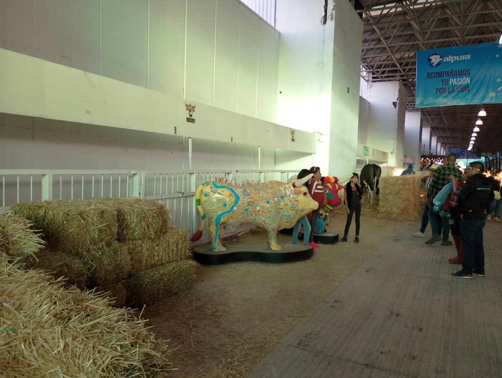 En la gran nave de la exposición ganadera, encontré espléndidos ejemplares vacunos alimentándose de forraje mientras infancias y personas adultas admiraban sus descomunales cuerpos, en unos casos, o apreciaban con ternura a los becerros. Algunas familias también se tomaban fotos con las esculturas de la exposición “Buey de arte y tradición”, presentada por el municipio de Corregidora.