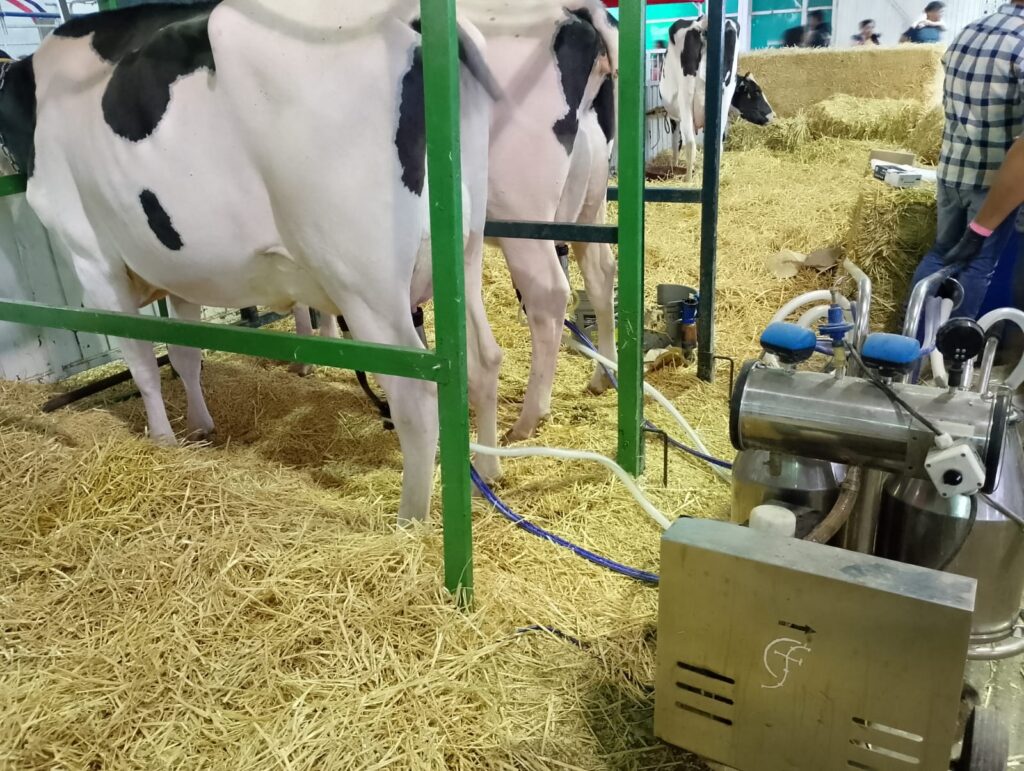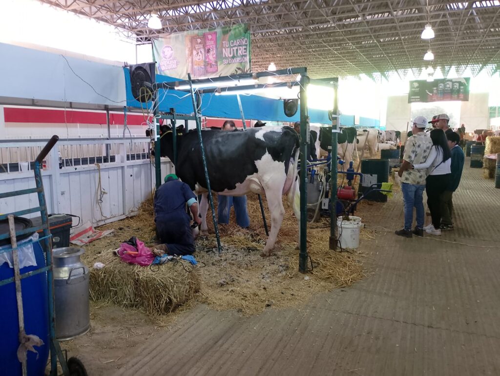 También tuve la ocasión de ver cómo colocaban máquinas de ordeña a algunas vacas, momento que atrajo la atención de muchas personas, quienes vieron las maniobras para poner tubos de succión en las ubres. Ciertos asistentes incluso se llevaron leche bronca recién ordeñada, la cual es almacenada en grandes tambos; la leche restante es recolectada por lecheros para procesarla y que sea fácilmente consumible.