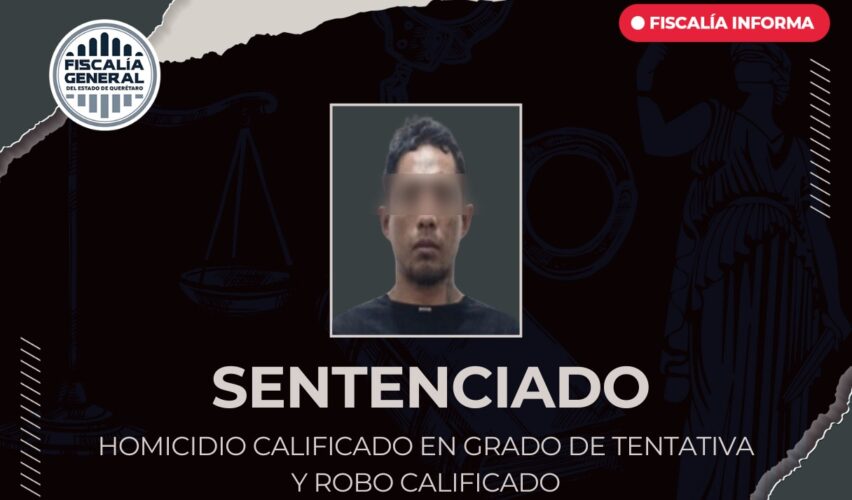 Querétaro, Qro., 26 de noviembre de 2025.- La Fiscalía de Querétaro obtuvo una sentencia condenatoria en contra de Carlos David “N”, por los delitos de homicidio calificado en grado de tentativa y robo calificado, en dos hechos distintos ocurridos en 2022 y 2024. La resolución fue emitida por la autoridad judicial, imponiendo una pena de 43 años, 6 meses y 15 días de prisión, además de sanciones económicas y la reparación del daño.