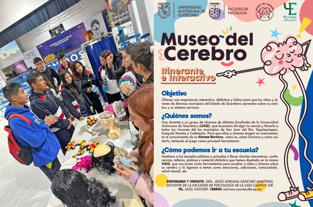 Es la doctora Jesús Adriana Sánchez Martínez, quien desde hace poco más de tres años dirige el Museo del Cerebro Itinerante e Interactivo, un proyecto que lleva a cabo junto con un igual de entusiasta grupo de psicólogas y psicólogos en formación del campus San Juan del Río de la Facultad de Psicología de la Universidad Autónoma de Querétaro (UAQ).
