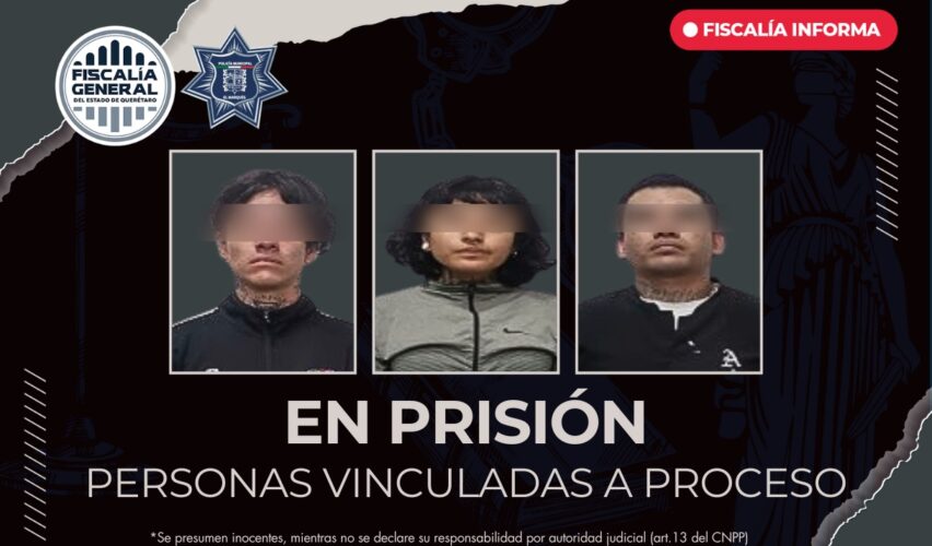 Querétaro, Qro., 8 de diciembre de 2025.- La Fiscalía de Querétaro obtuvo la vinculación a proceso para tres personas por su probable intervención en el delito de robo a transeúnte con violencia, ocurrido el pasado 26 de noviembre, en La Cañada, municipio de El Marqués.