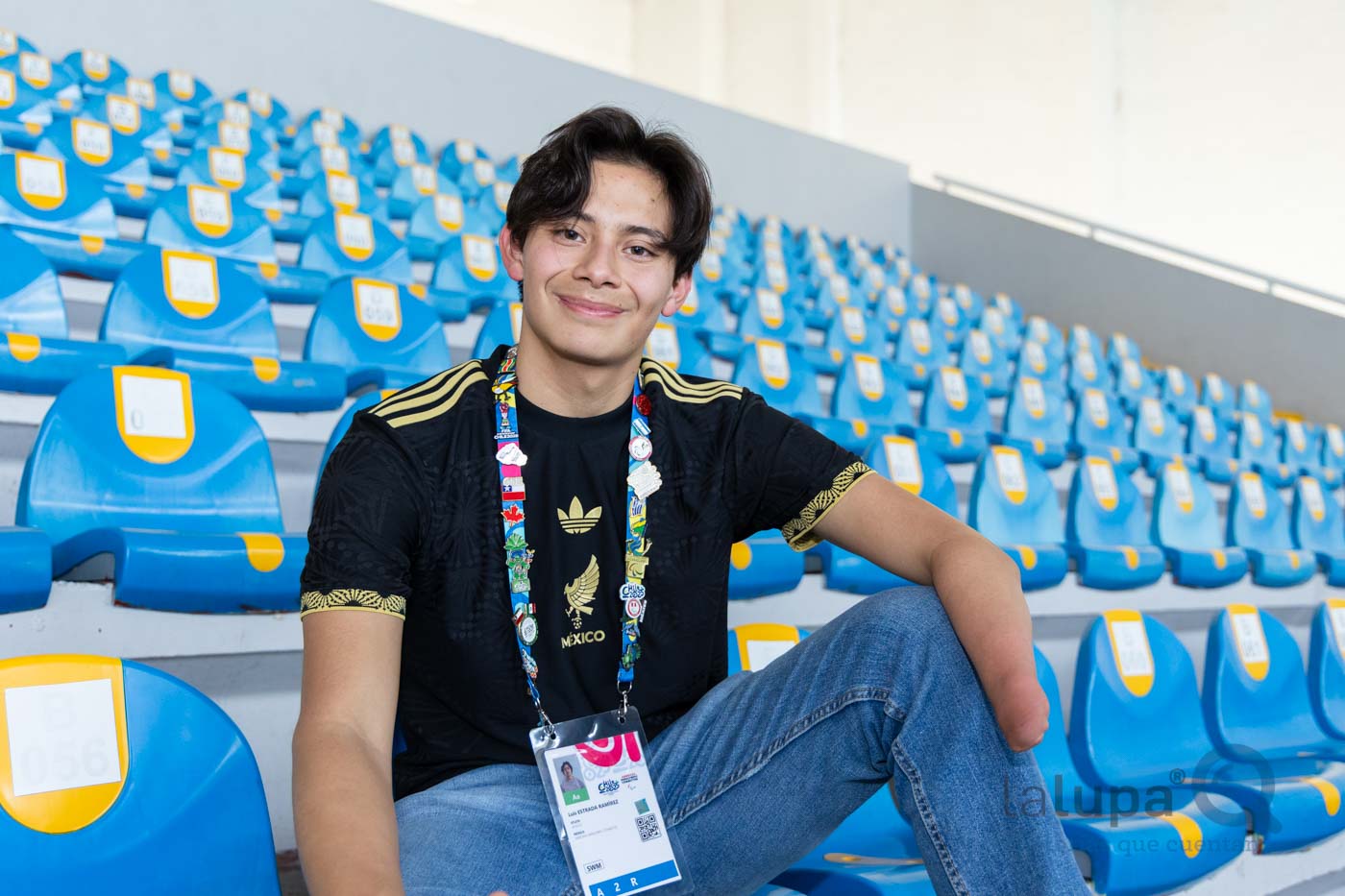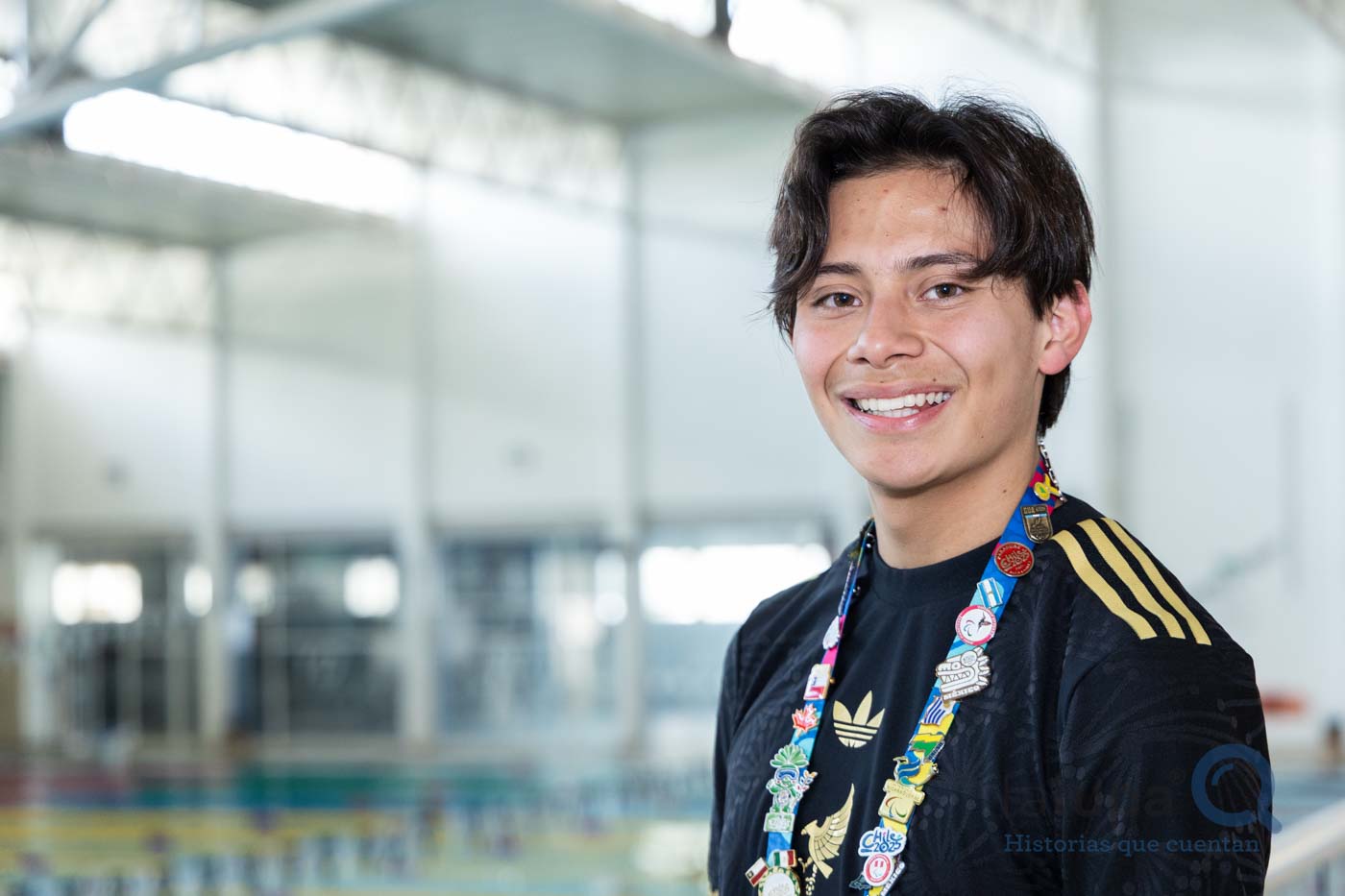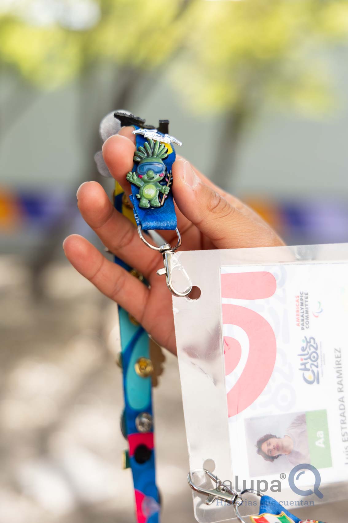 El ocho veces medallista de oro en para natación y una en paratriatlón en la pasada Paralimpiada Nacional 2025 de la Comisión Nacional de Cultura Física y Deporte (Conade) muestra los pines que logró intercambiar con deportistas de otros países: Canadá, Argentina, Trinidad y Tobago, Uruguay, Nicaragua, Paraguay, Guatemala, Brasil, Perú, Colombia, entre otros, así como a la mascota oficial “Aruco”, inspirada en un árbol nativo de Chile y la primera con discapacidad visual.