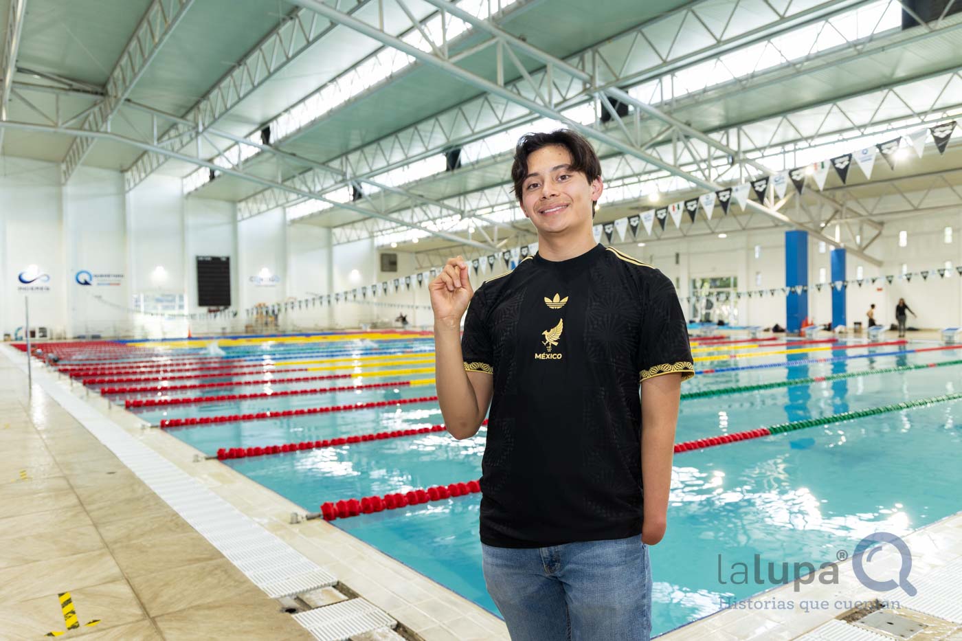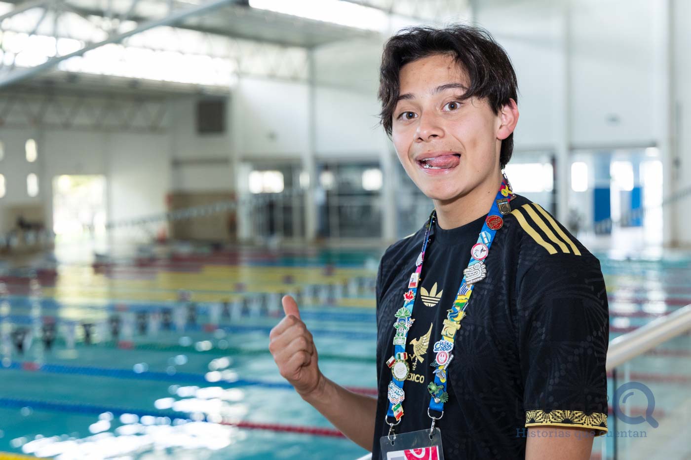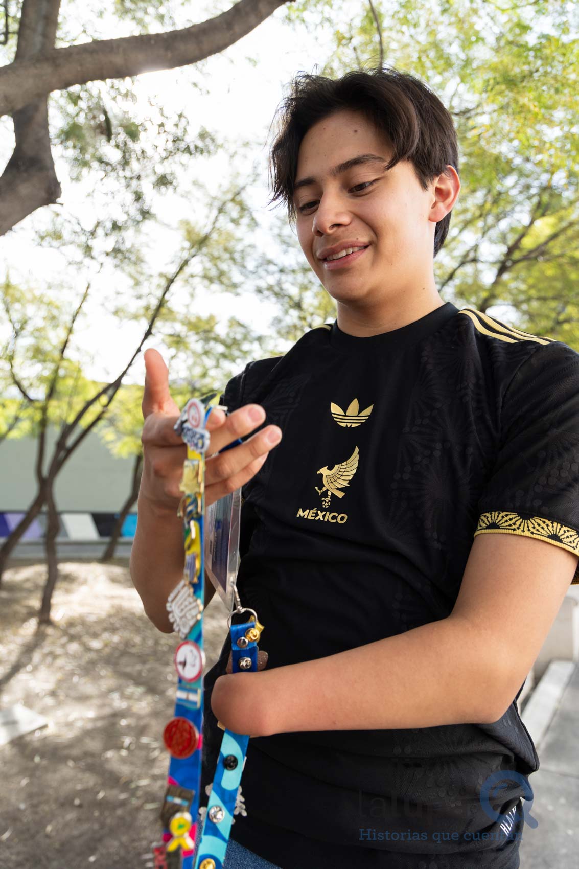 El ocho veces medallista de oro en para natación y una en paratriatlón en la pasada Paralimpiada Nacional 2025 de la Comisión Nacional de Cultura Física y Deporte (Conade) muestra los pines que logró intercambiar con deportistas de otros países: Canadá, Argentina, Trinidad y Tobago, Uruguay, Nicaragua, Paraguay, Guatemala, Brasil, Perú, Colombia, entre otros, así como a la mascota oficial “Aruco”, inspirada en un árbol nativo de Chile y la primera con discapacidad visual.