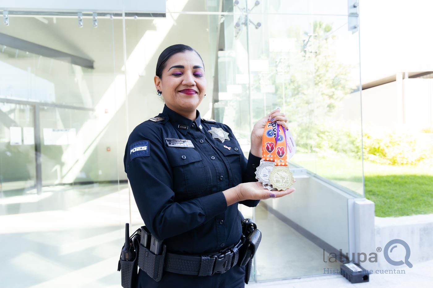 Por ejemplo, la oficial Estefanía Martínez compitió en las disciplinas de tiro y fue campeona en varias pruebas, a pesar de que es su primer año como policía: “En mi caso, participé en tiro FBI y en tiro SWAT. Para dar contexto, el tiro SWAT consiste en un circuito, donde corres, haces pruebas de fuerza, para que cuando llegues a la prueba con el arma, estés fatigado; se trata de controlar tu respiración y tu cuerpo, para poder atinar los impactos. En el caso de tiro FBI, es una prueba de reacción, muy veloz”