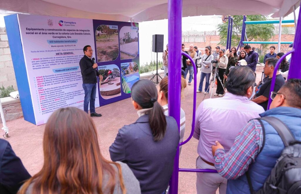 Corregidora, Qro., 14 de diciembre de 2025.- El presidente municipal de Corregidora, Chepe Guerrero, entregó el nuevo parque de la colonia Luis Donaldo Colosio, en La Negreta, obra que beneficia de manera directa a 650 habitantes de la zona y tuvo una inversión cercana a 4 millones de pesos.