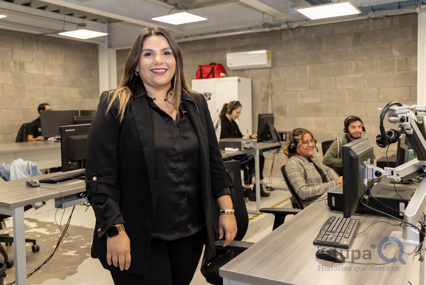 La jefa del Call Center de la AMEQ, Diana Elena López Cano, dirige ocho estaciones que atienden diferentes líneas de lunes a domingo de las 5 de la mañana a las 10 de la noche, los 365 días del año, a través del número de información *8800 y reciben un promedio de 300 llamadas diarias.