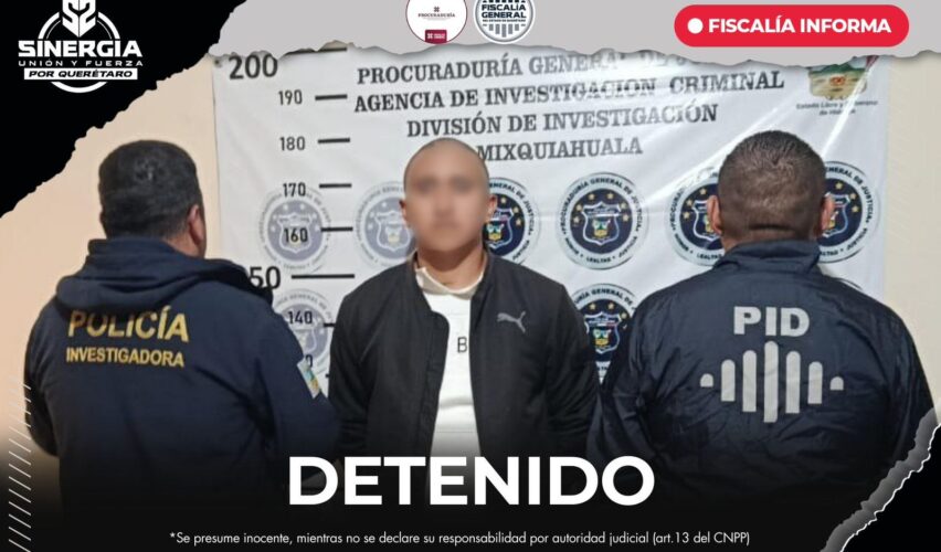 La detención se llevó a cabo el pasado 13 de diciembre de 2025, en el municipio de Mixquiahuala, Hidalgo, mediante un trabajo de coordinación entre la Fiscalía General del Estado de Querétaro y la Procuraduría General del Estado de Hidalgo. En el marco de esta colaboración, se realizó la entrega–recepción del imputado por parte de agentes de la Policía Investigadora del estado de Hidalgo a elementos de la Policía de Investigación del Delito de esta Fiscalía, dando cumplimiento al mandato judicial emitido por autoridad del estado de Querétaro.