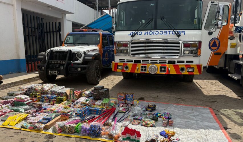 Por otro lado, durante los recorridos, elementos operativos de la Coordinación Municipal de Protección Civil localizaron y aseguraron en la calle Nuevo León un costal con pirotecnia.