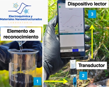 Dentro de esta amplia gama de tecnologías, los sensores electroquímicos han adquirido gran relevancia por su capacidad para detectar sustancias de forma rápida, precisa y a bajo costo. En términos simples, funcionan al “leer” los cambios eléctricos que ocurren cuando una molécula entra en contacto con un electrodo. Estos cambios se convierten en señales que permiten identificar una sustancia e incluso determinar su concentración. Podemos imaginarlos como intérpretes: cuando una molécula llega a la superficie del electrodo, se genera una reacción que produce una señal eléctrica, y el sensor la traduce en información útil. Un ejemplo clásico es el sensor de glucosa, que mide la cantidad de azúcar presente en una gota de sangre mediante una reacción electroquímica. Lo que hace especialmente valiosos a estos sensores es que requieren muestras mínimas, consumen poca energía y pueden fabricarse como dispositivos portátiles o desechables, lo que los vuelve ideales en biomedicina, industria alimentaria y monitoreo ambiental.