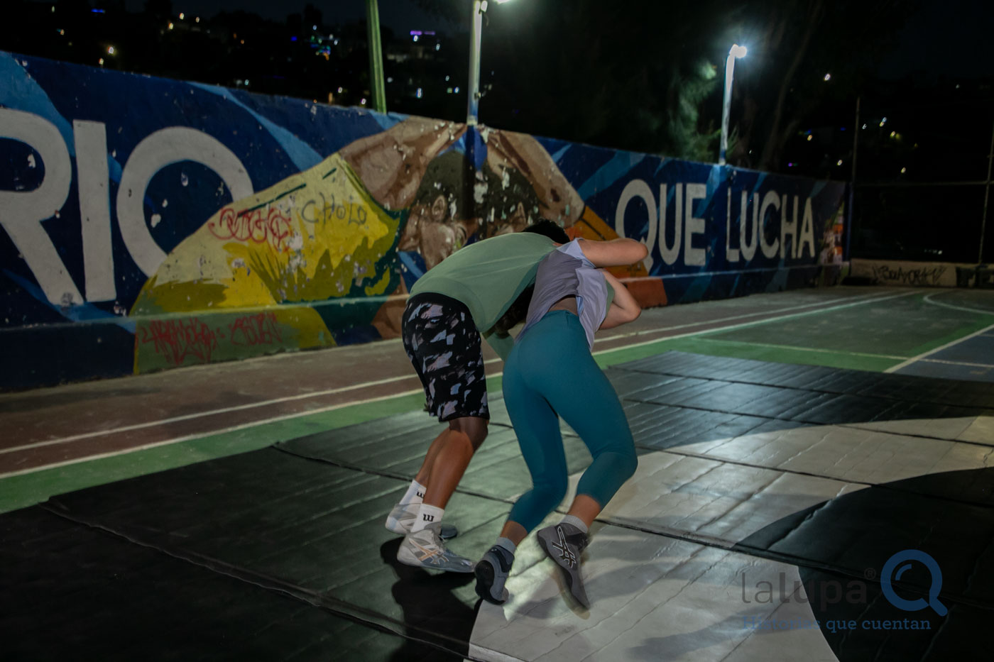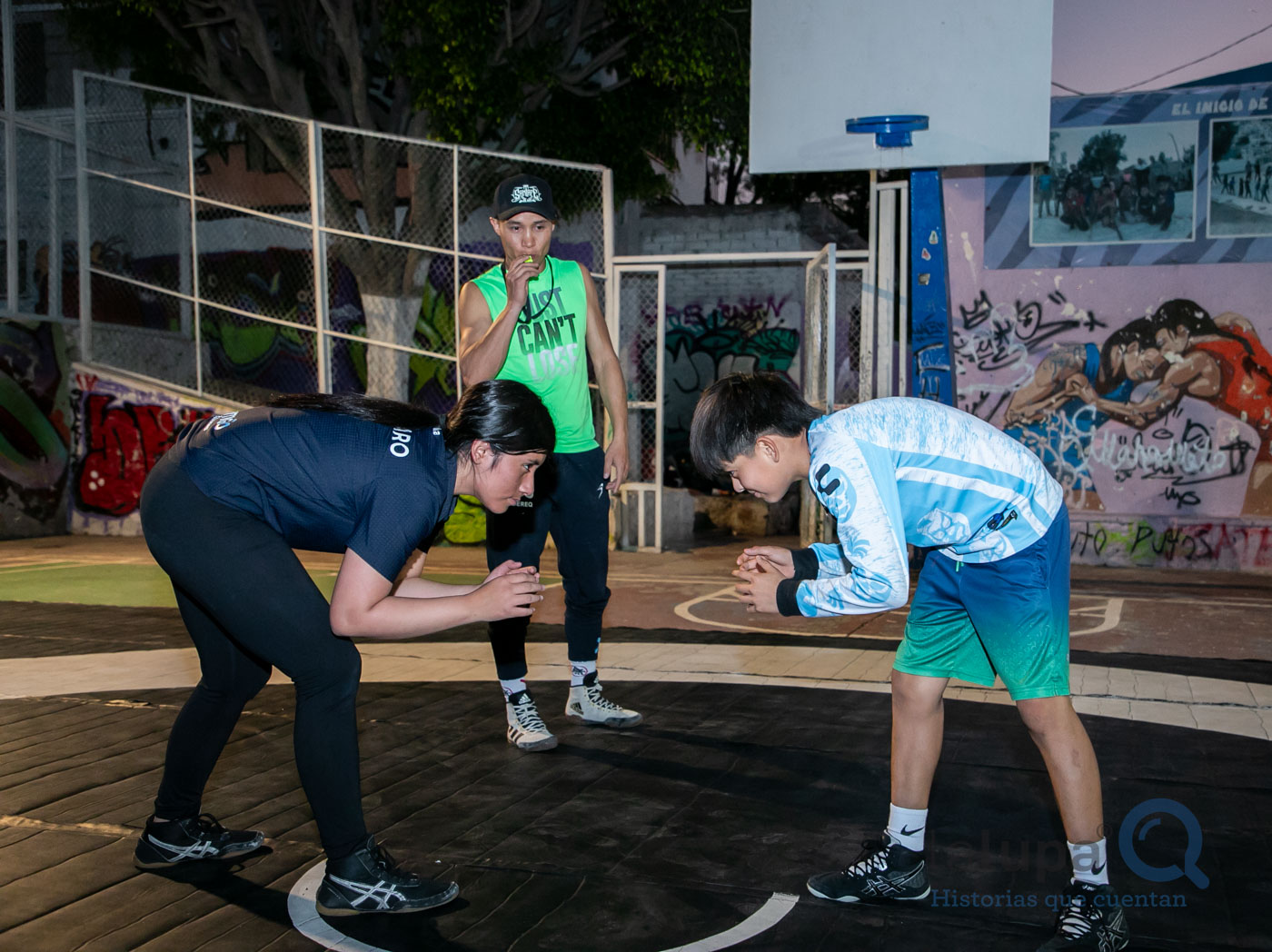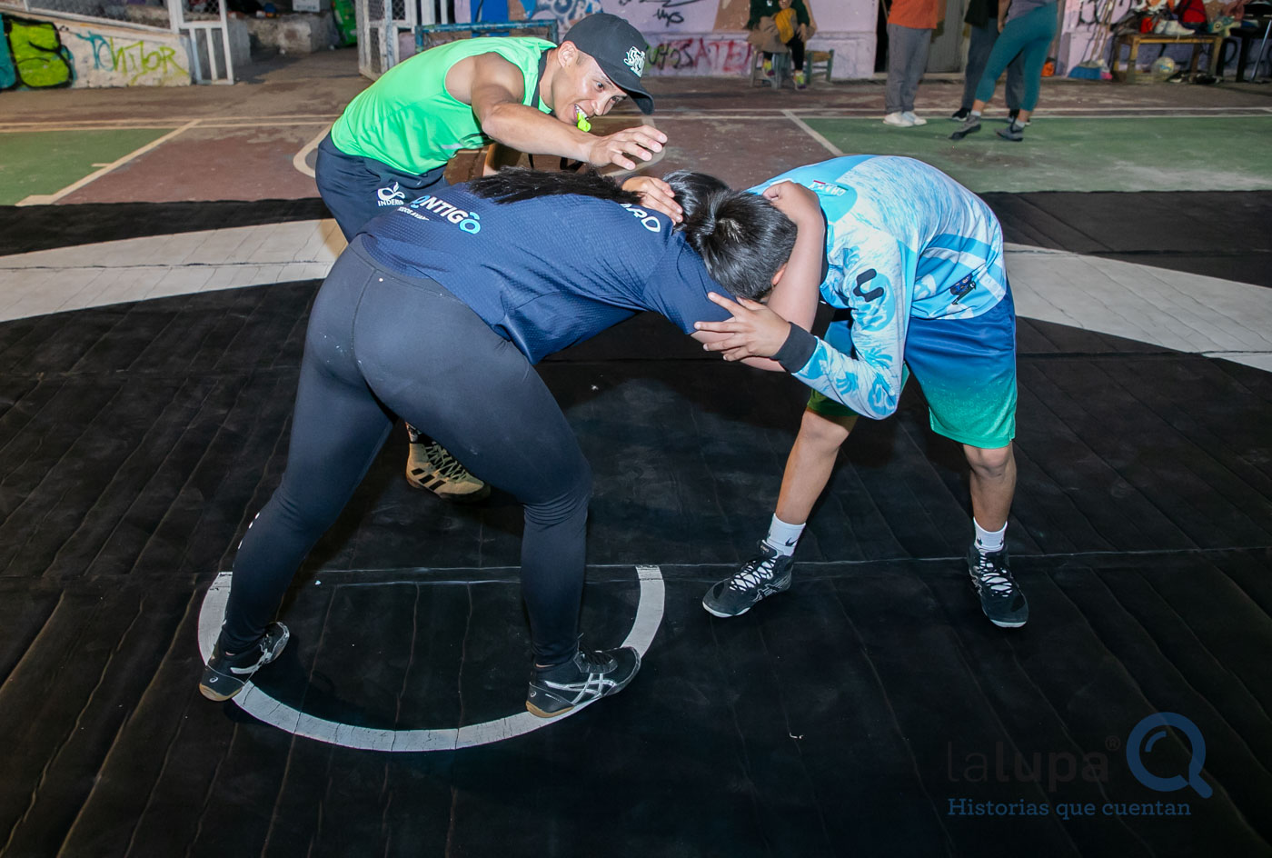 La lucha es un deporte de salón, pero David y los hermanos Mondragón deseaban inculcar esta disciplina a las niñas y niños de los tres barrios. En enero de 2021 no tenían más que un terreno baldío en Rancho San Antonio, afuera de las canchas. Con llantas y una lona simularon un colchón. Había pandemia, la práctica deportiva no era prioridad y la gente de alrededor no confiaba en lo que hacían.
