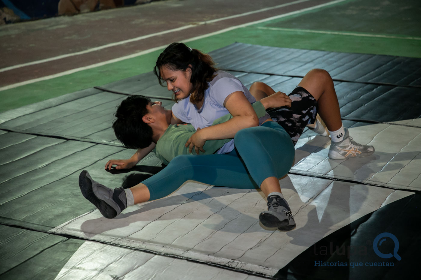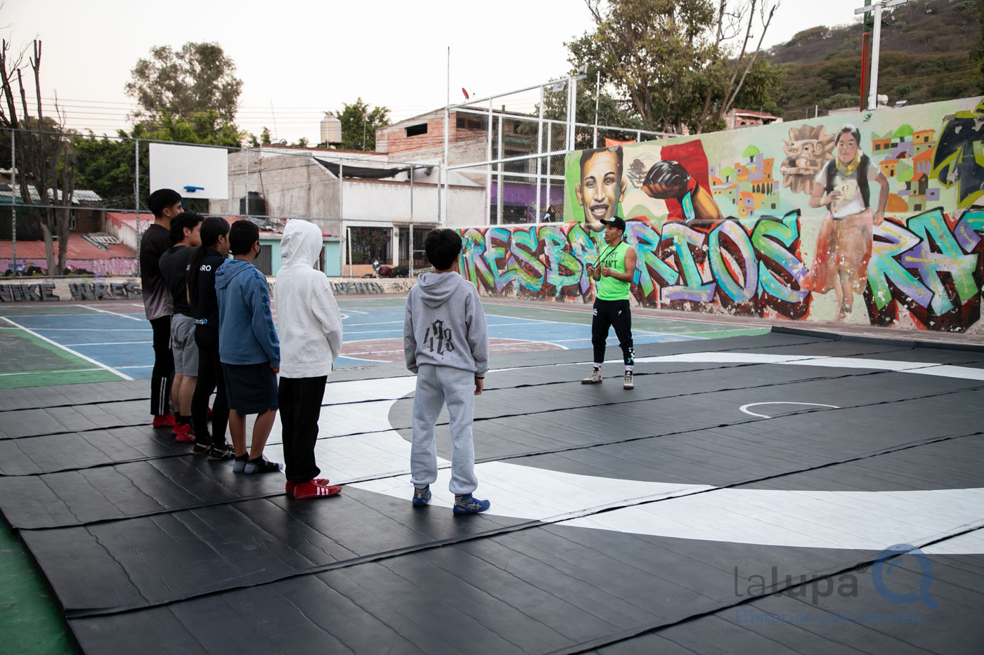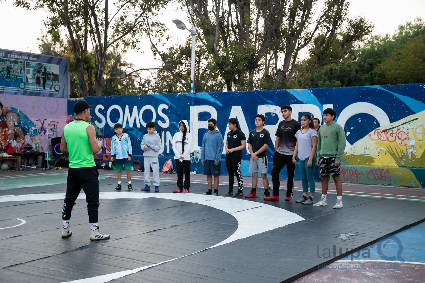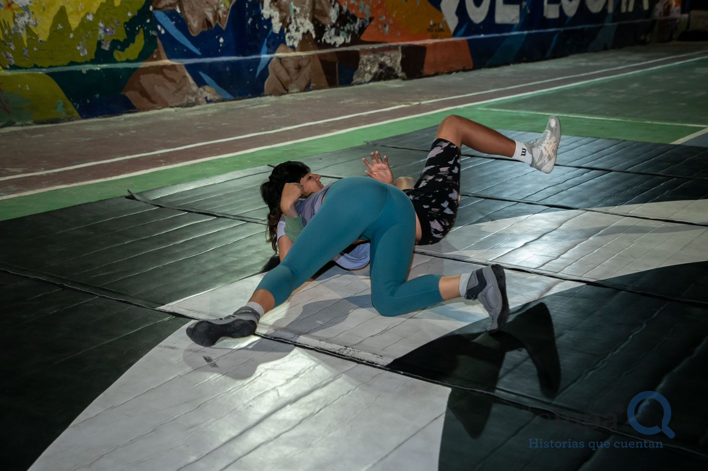La lucha es un deporte de salón, pero David y los hermanos Mondragón deseaban inculcar esta disciplina a las niñas y niños de los tres barrios. En enero de 2021 no tenían más que un terreno baldío en Rancho San Antonio, afuera de las canchas. Con llantas y una lona simularon un colchón. Había pandemia, la práctica deportiva no era prioridad y la gente de alrededor no confiaba en lo que hacían.