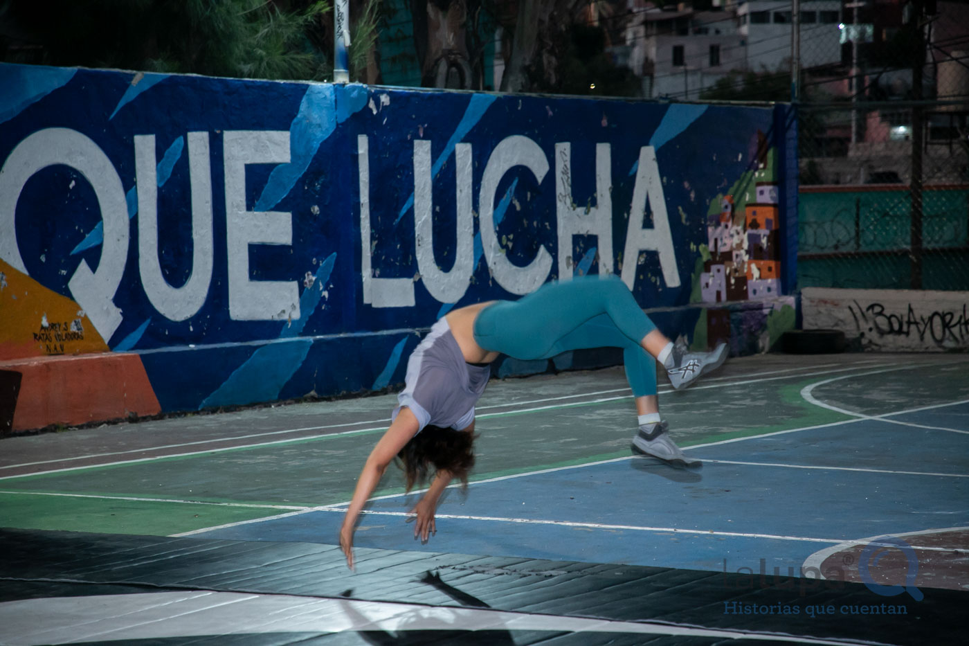 Sara Robles Alcántara tenía 11 años en la época en que su hermano la animó a asistir al grupo que estaban por iniciar sus amigos dentro del barrio. En aquel momento tenían “un colchoncito con arena, aserrín, con llantas. Dije, voy a ver. Al principio no me gustaba, se me hacía muy aburrido, era aprender la acrobacia y la técnica de cero”.