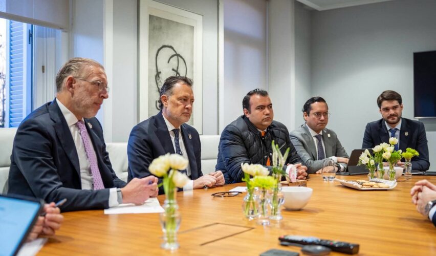 Colón, Qro., 19 de enero de 2026.- El presidente municipal, Gaspar Trueba Moncada, asistió con el gobernador, Mauricio Kuri González, a la reunión con directivos de Plásticos Durex, en la que se confirmó que esta empresa expandirá sus operaciones en Colón.