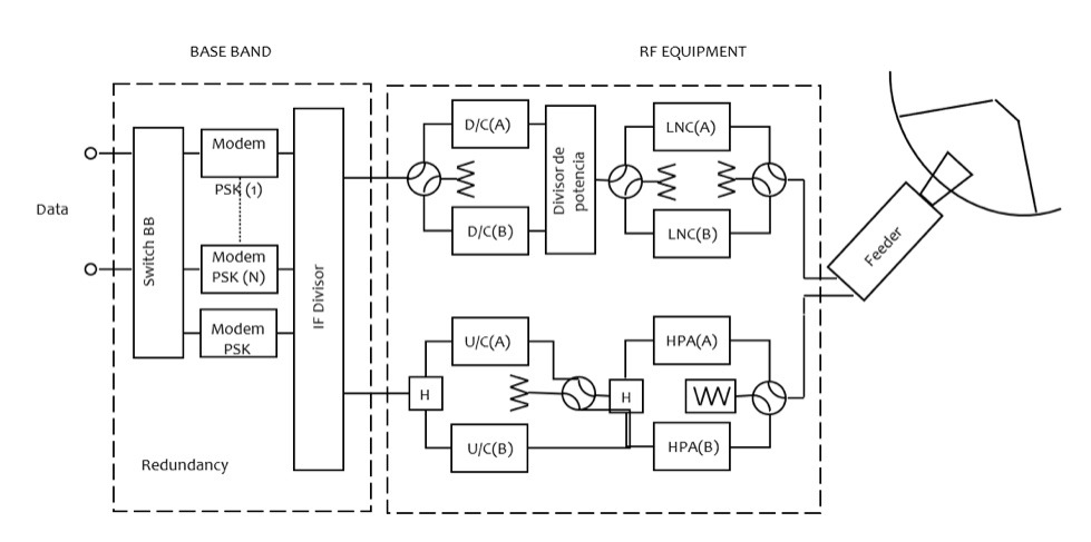 Dado que el segmento terrestre estará recibiendo y transmitiendo señales en diferentes espectros de frecuencias, es necesaria la coordinación nacional e internacional del uso de las frecuencias para actividades de telemetría, seguimiento y comando. Actualmente, el ente regulador en México es la CRT –Comisión Reguladora de Telecomunicaciones– y a nivel internacional es la UIT –Unión Internacional de Telecomunicaciones–. En la Figura 2 se muestran la sección de banda base y de radiofrecuencia del segmento terrestre.