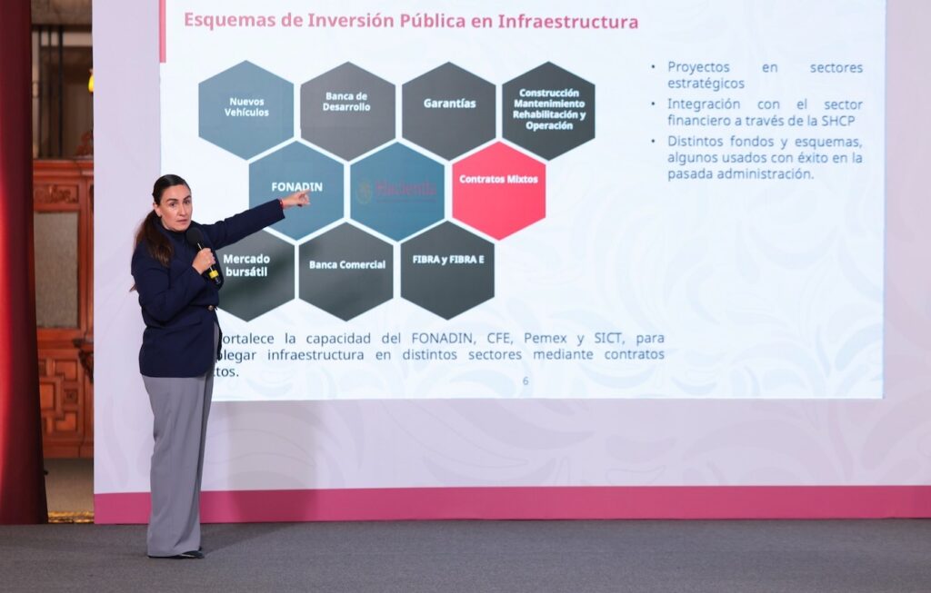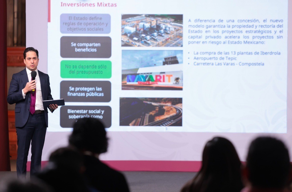 El director general del Banco Nacional de Obras y Servicios Públicos (Banobras), Jorge Mendoza Sánchez, explicó que las inversiones mixtas representan un modelo que garantiza la propiedad y rectoría del Estado en los proyectos estratégicos, y el capital privado acelera los proyectos. Con ello, el Estado define reglas de operación y objetivos sociales, se comparten beneficios, no se depende de un sólo presupuesto, se protegen las finanzas públicas y se priorizan el bienestar social y la soberanía.