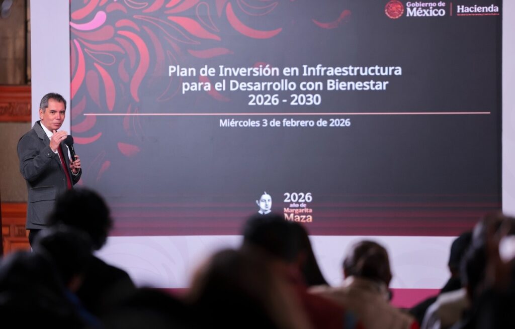 Ciudad de México, 3 de febrero de 2026.- La Secretaría de Hacienda y Crédito Público del gobierno federal presentó el Plan de Inversión en Infraestructura para el Desarrollo con Bienestar 2026-2030, que tiene como objetivo realizar una inversión histórica pública y mixta de 5.6 billones de pesos en ocho sectores estratégicos: energía, trenes, carreteras, puertos, salud, agua, educación y aeropuertos.
