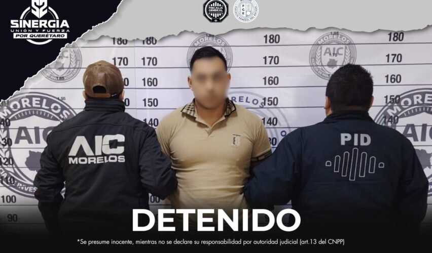 La detención se llevó a cabo el pasado 22 de enero en el municipio de Temixco, Morelos, como resultado de trabajos de investigación y localización realizados por personal de la Fiscalía queretana en sinergia con su homóloga en Morelos.