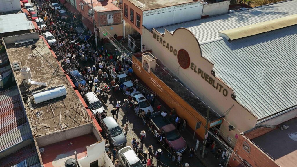 En la entrada de la Basílica de Nuestra Señora del Pueblito, el padre guardián del recinto, Fray Antonio Miranda Arroyo, realizó la bendición de los bueyes llevados por las corporaciones entrante y saliente, acompañado del rector de la Basílica, Fray Francisco Salinas Osornio; el párroco de San Francisco Galileo, Jaime Gutiérrez, representantes de las corporaciones y mayordomías, así como miembros del gabinete municipal y regidores.