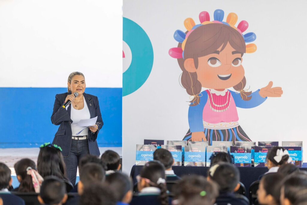 Ante la comunidad estudiantil, hizo hincapié en que estos materiales didácticos tienen como objetivo fomentar en las alumnas y alumnos la lectura, promoviendo la preservación y el enriquecimiento del patrimonio artístico, histórico y cultural del estado de Querétaro.