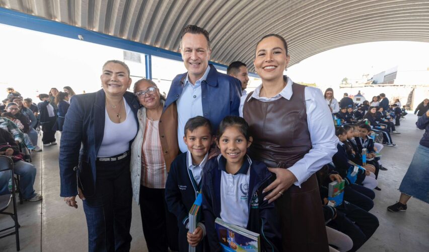 Querétaro, Qro., 10 de febrero de 2026.- El gobernador Mauricio Kuri encabezó la entrega del paquete de libros Defensores de Querétaro, cuya segunda edición llegará a 150 primarias de los 18 municipios; además, por primera vez también se distribuirá en 260 escuelas primarias particulares.