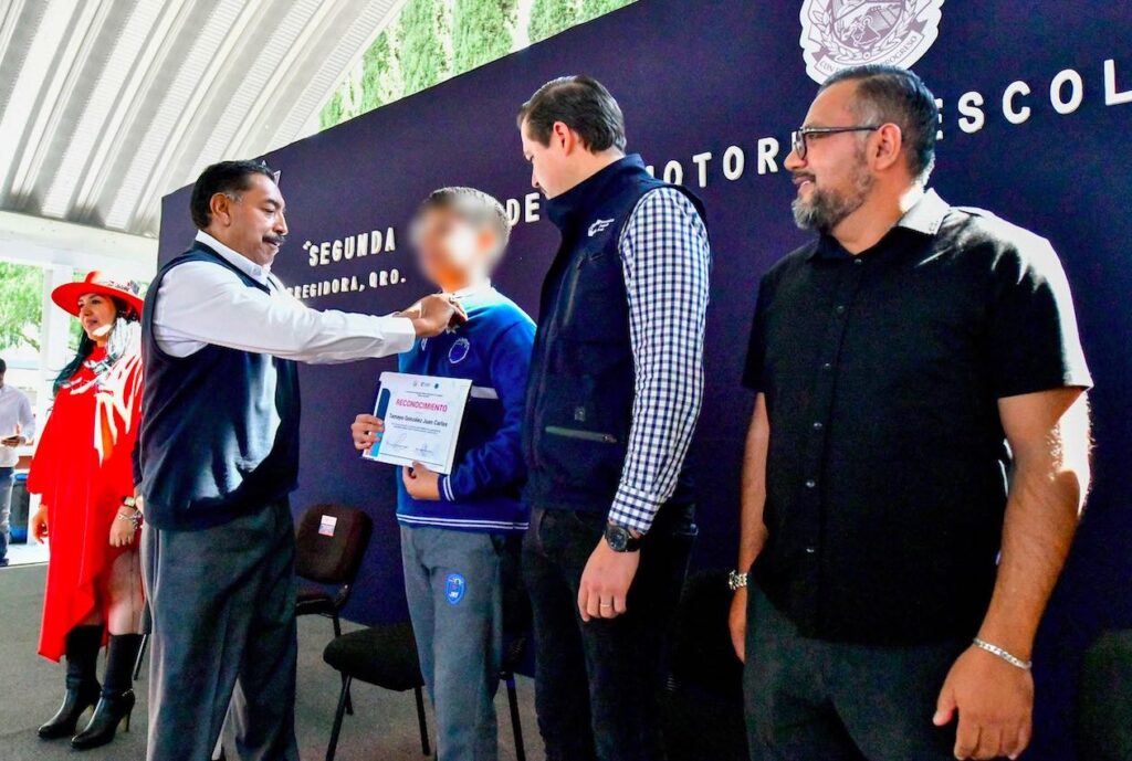 En el evento estuvieron: el secretario municipal de Desarrollo Social, Germán Borja; la directora general del Centro de Prevención Social del Delito y la Violencia en el Estado de Querétaro, Sonia Colín; el regidor presidente de la Comisión de Educación, Martín Uribe, y el director de la secundaria Jesús Romero Flores, Luis Noel Labra.