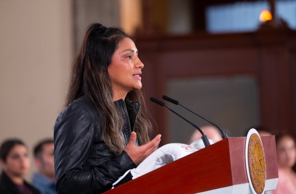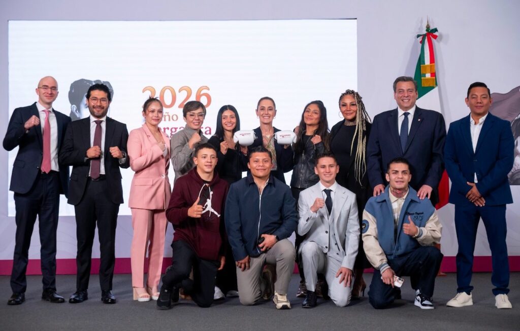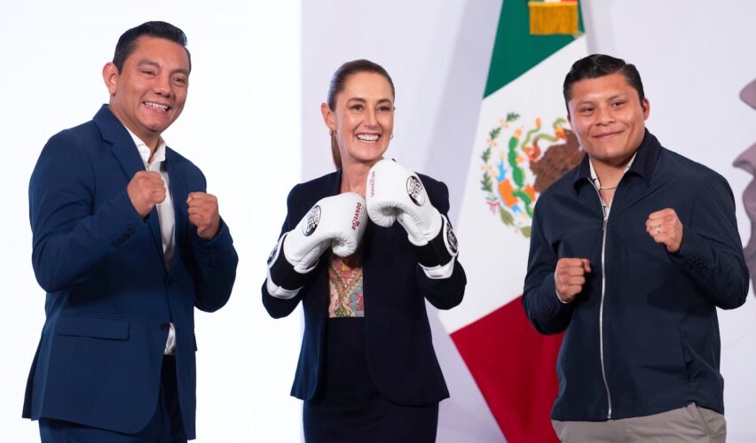 En la conferencia matutina, estuvieron presentes las boxeadoras Mariana “la Barbie” Juárez y Lulú Juárez, así como los púgiles Alejandro “el Konejo” González y Juan Pérez “el Güerito de Tepito”. Mientras que Isaac “el Pitbull” Cruz y Cristian Mijares le colocaron a la presidenta los guantes conmemorativos de Boxeando por la Paz.