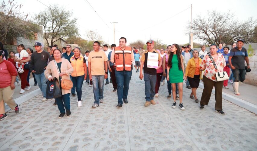 Colón, Qro., 18 de febrero de 2026.- El alcalde de Colón, Gaspar Trueba Moncada, encabezó la entrega de urbanización a base de empedrado ahogado en mortero de la calle Belisario Domínguez, en su primera etapa, en la comunidad de La Peñuela.
