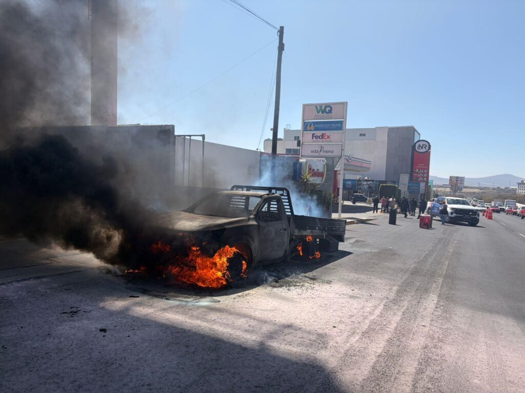 El Marqués, Qro., 23 de febrero de 2026.- Elementos de Protección Civil de El Marqués atendieron el incendio de un vehículo registrado sobre el Anillo Vial Fray Junípero Serra, a la altura de La Pradera.