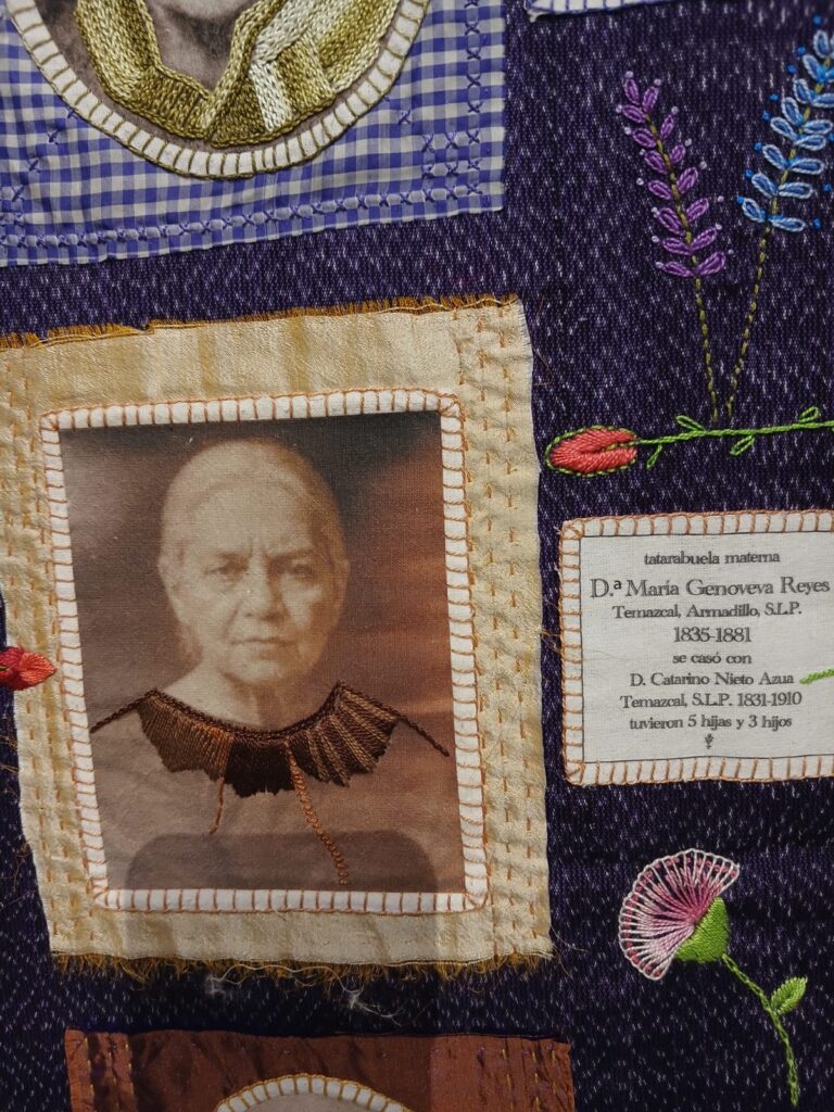 En la actual versión con sede queretana lo hace de la mano de las curadoras Karen Cordero y Mayra Mendoza, dupla que considera un privilegio transitar de cerca. “Me doy cuenta de que tuve suerte porque entre las tres encontramos ecos que me han ayudado a tomar cierta distancia y darle orden y respeto a las piezas. Cuando Karen supo que estaba bordando algo sobre mis ancestras, me dijo que si hacía una exposición le gustaría curarla. Y digo que es una gran suerte en la vida porque ir caminando junto a personas no involucradas con tu familia, y con quienes empiezas a rebotar todas tus ideas, es mucho más ligero. Además, la idea del feminismo que tiene Karen me da mucha fuerza. Y Mayra es especialista en archivos y en conservación así que ha sido fundamental”.