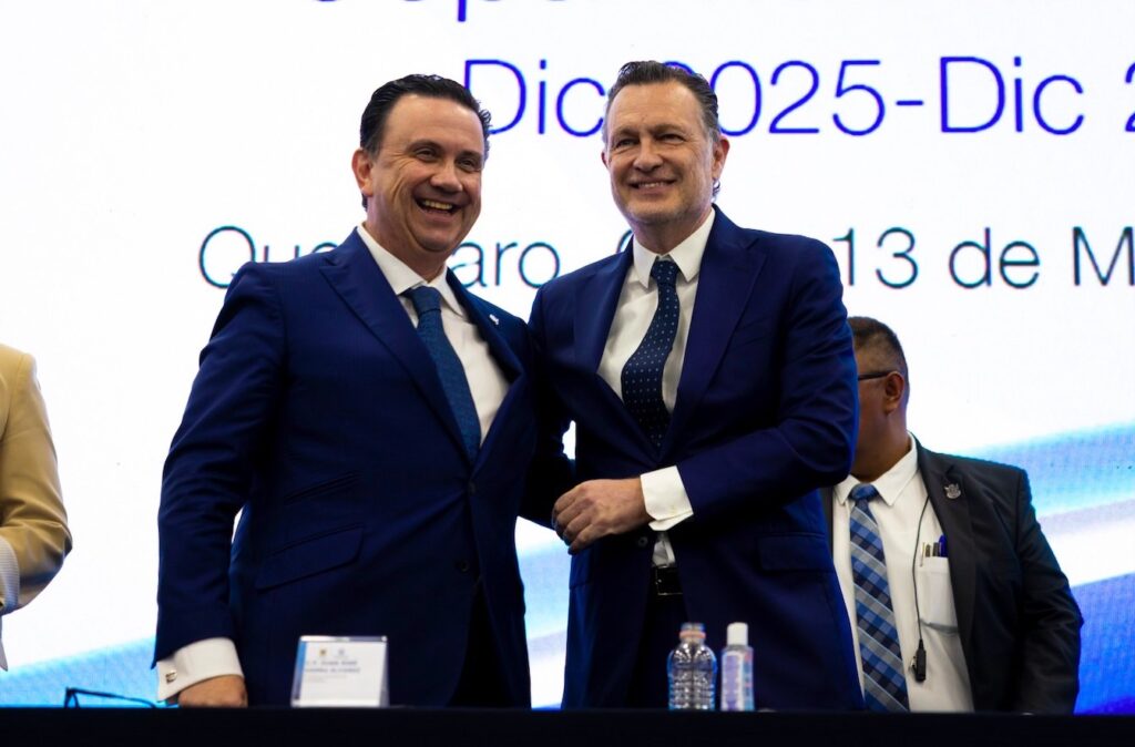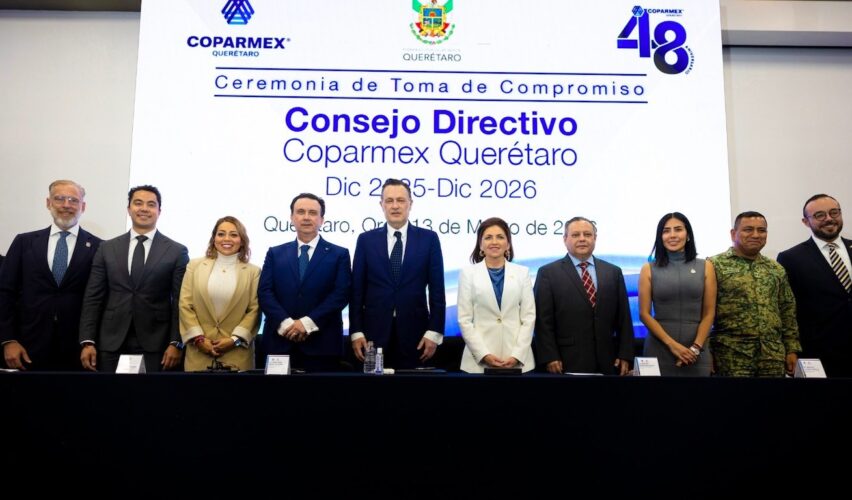 Querétaro, Qro., 13 de marzo de 2026.- El gobernador Mauricio Kuri atestiguó la toma de compromiso de integrantes del consejo directivo de la Confederación Patronal de la República Mexicana (Coparmex) delegación Querétaro, que encabeza por segunda ocasión Beatriz Hernández Rojas, para el periodo 2025-2026.