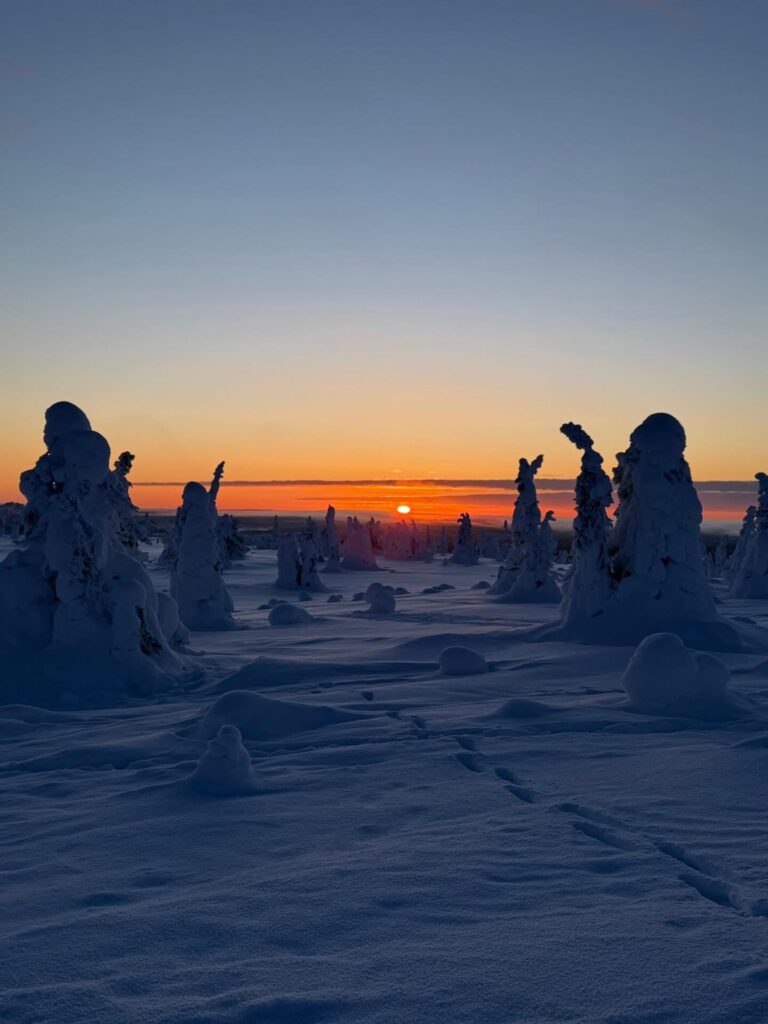 La Laponia finlandesa es un desfile de asombros. En apenas cincuenta kilómetros, el paisaje muta del abismo del cañon de Korouoma, al surrealismo visual del parque nacional Riisitunturi, donde los abetos gigantes, vencidos por el peso de la nieve, se transforman en figuras espectrales, alienígenas, como si provinieran de algún bosque situado en algún lejano planeta.