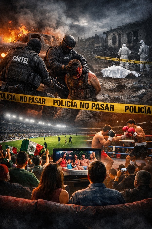 Pero también hay que admitir una verdad incómoda: en México la tragedia nacional convive con una sociedad que parece anestesiada, feliz de distraerse con los circos de nuestro mediocre futbol, con los reality shows o con los espectáculos de boxeo, mientras el país se sumerge rápidamente en la indiferencia y en la normalización de la violencia como forma cotidiana de vida.