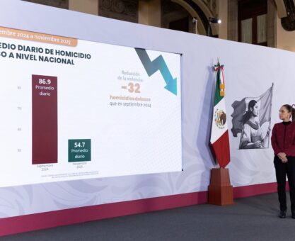 Disminuyen 37% homicidios dolosos de septiembre de 2024 a noviembre de 2025