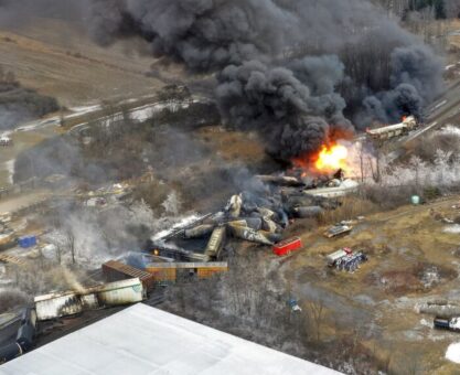 Tras accidente de tren con químicos en Ohio, evacúan a familias por riesgo de intoxicación
