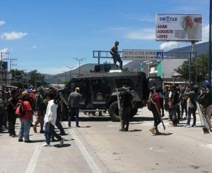 Manifestantes se enfrentan con policías en Chilpancingo y toman vehículo blindado