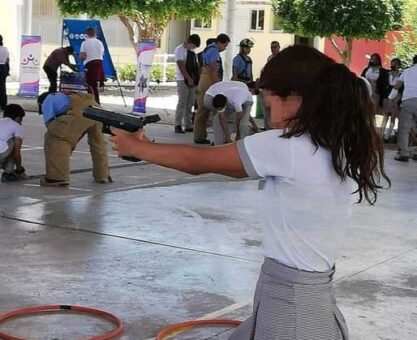 Policías de Guanajuato prestan armas a estudiantes de secundaria