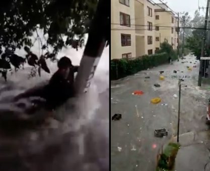 Videos 🎥 Lluvia se lleva puestos y hasta gente en Tlalnepantla, Estado de México
